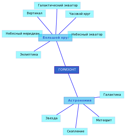 Большой круг (см.) небесной сферы, плоскость которого перпендикулярна отвесной линии - чтобы отличить это понятие от видимого горизонта - линии кажущегося слияния земной поверхности с небом, в астрономии горизонт называют математическим (он же астрономический или истинный горизонт).Засов А.В., ГАИШ, Москва