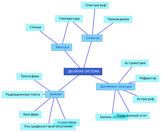 Система из двух звезд, обращающихся по орбитам вокруг общего центра масс. Такие системы бывают нескольких типов:- у визуальных двойных оба компонента видны по отдельности;