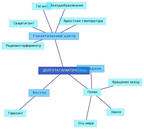 Одна из координат в галактической системе кординат; угол, измеряемый вдоль галактического экватора к востоку, от точки, обозначающей галактический центр, до меридиана, проходящего через небесное светило и галактические полюса.Сурдин В.Г., ГАИШ, Москва