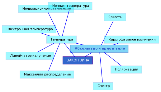 Определяет длину волны, на которой абсолютно черное тело излучает наибольшее количество энергии, обратно пропорционально его абсолютной температуре. Коэффициент пропорциональности (постоянная закона Вина) равен 0.290 см К. Теоретически обоснован трудами русск. физика В.А.Михельсона и нем. - В.Вина в 1893 г.Засов А.В., ГАИШ, Москва