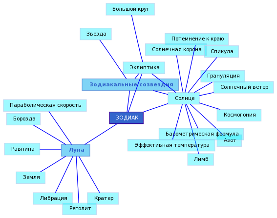 Зона на небе шириной по 9o в обе стороны от эклиптики, содержащая видимые пути Солнца, Луны и основных планет. Она проходит через 13 созвездий и делится на 12 знаков зодиака (см. зодиакальные созвездия).Сурдин В.Г., ГАИШ, Москва