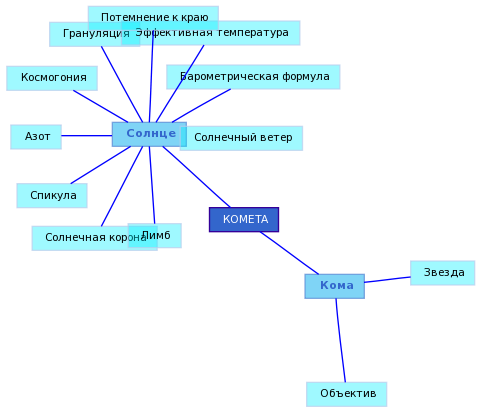 Небольшие (размером до нескольких км) метеоритные или астероидные тела, движущиеся по сильно вытянутым эллиптическим или параболическим орбитам вокруг Солнца. По мере приближения к Солнцу у К. под действием его электромагнитного и корпускулярного излучения возникает светящаяся газовая оболочка (голова, или кома К.) из вещества ранее адсорбированного или намерзшего на твердом теле и испаряющегося с его поверхности. Ионизованные газы комы ускоряются солнечным ветром в сторону противоположную Солнцу, образуя длинный газовый хвост, простирающиеся на миллионы и десятки миллионов км; слегка изогнутые хвосты второго типа формируются пылевыми частицами.Засов А.В., ГАИШ, Москва