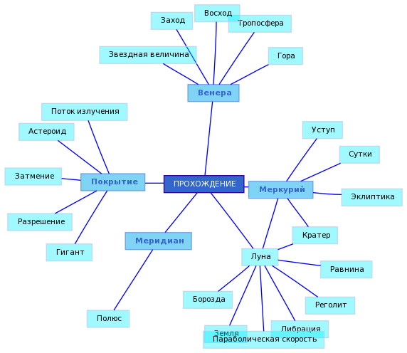 Видимое пересечение светилом какой-либо линии или области на небе. Под прохождением звезды обычно понимают пересечение ею небесного меридиана; когда происходит прохождение Меркурия или Венеры по диску Солнца планета видна на его фоне как черное пятнышко. Когда диск Луны заслоняет какую-либо планету или иной небесный объект, говорят о прохождении Луны или покрытии объекта Луной.Сурдин В.Г., ГАИШ, Москва