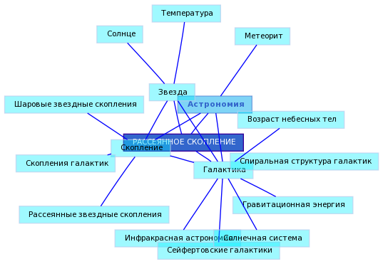 Звездные скопления в дисках спиральных и неправильных галактик, обычно состоящие из нескольких сотен или тысяч звезд молодого или умеренного возраста (10-100 млн лет). Имеют меньшую плотность и выглядят более разреженными, чем шаровые скопления. Их устаревшее название "галактические скопления" указывает на видимую концентрацию к плоскости Галактики, т.е. к Млечному Пути. Англоязычное название рассеянных скоплений (open cluster) иногда неверно переводят в научно-популярной литературе как "открытое скопление". Такого термина в современной русскоязычной астрономии нет.