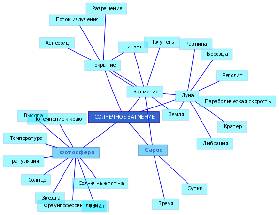 Покрытия Солнца Луной. Различают:- полные солнечные затмения, во время которых на некоторое время Луна полностью покрывает солнечную фотосферу (самое большее на 7 мин.);