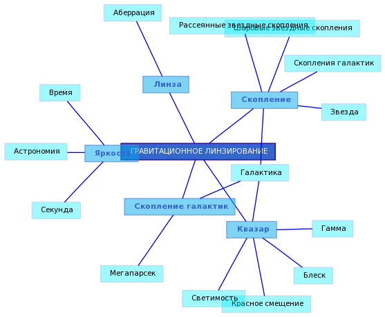 Гравитационное линзирование - физическое явление, связанное с отклонением лучей света в поле тяжести.