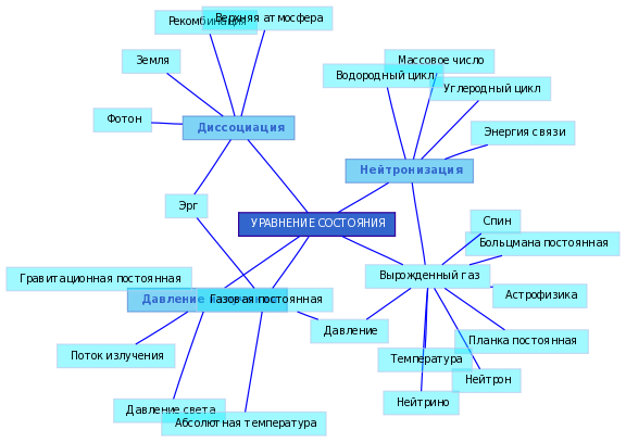 В астрофизике под У.с. в широком смысле часто понимают всю совокупность зависимостей осн. термодинамич. величин (давления, уд. энергии, энтропии и др.) от темп-ры, плотности и хим. состава вещества.
