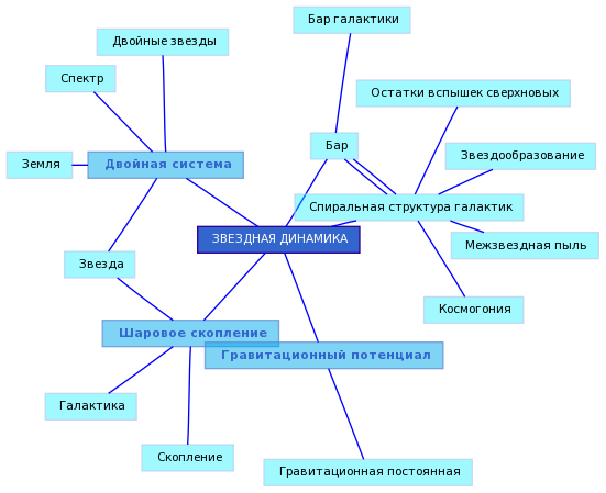 - раздел астрономии, изучающий строение, устойчивость и эволюцию звёздных систем - звёздных скоплений, галактик, а также скоплений галактик. Ур-ния, описывающие поведение отдельной звезды в системе, - это обычные ур-ния механики в сочетании с законом всемирного тяготения. Однако изучать с помощью этих ур-ний поведение звёзд в системах, состоящих из миллионов и миллиардов звёзд, практически невозможно даже с помощью совр. ЭВМ. В 3. д. вместо изучения траекторий отдельных звёзд часто исследуют усреднённые характеристики, определяемые ф-цией распределения звёзд, зависящей от времени (t), координат (r) и скоростей (v): f(t, r, v). ВеличинаПри таком подходе описание системы звёзд подобно описанию газа. Наиболее велико сходство между звёздным скоплением и плазмой - ионизованным газом, состоящим из ионов и электронов. Подобно звёздам в скоплении, электроны и ионы плазмы взаимодействуют между собой с силой, убывающей с расстоянием по закону обратных квадратов. Однако в характере взаимодействий имеется и существенное различие, связанное с тем, что звёзды между собой всегда притягиваются, а в плазме частицы как притягиваются, так и отталкиваются в зависимости от знака зарядов. Вследствие этого плазму всегда можно считать нейтральной, а звёздное скопление всегда "заряжено" и должно иметь спец. строение, чтобы находиться в равновесии.