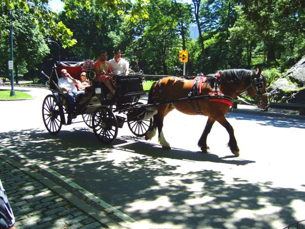In the Central park one can ride a horse. And a human (riksha). Observation for an observer. Near a fountain.