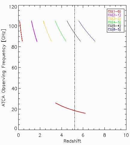 Figure 1: The available observing windows for Compact Array observations of redshifted