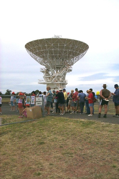 As the April issue of ATNF news was going to press the Observatory was conducting an Open Day. On April 16 more than 600 people took advantage of this event, some travelling from as far away as Melbourne and Brisbane. Two antennas were made available for inspection and judging by the continuous stream of visitors wishing to take part in the inspection, this was a star attraction. Feedback from the visitor questionnaires also reflected the popularity of the inspections. The four remaining antennas were used to observe the Doradus Nebula in the Large Magellanic Cloud and the incoming data were viewed by visitors in the Compact Array Control Room.