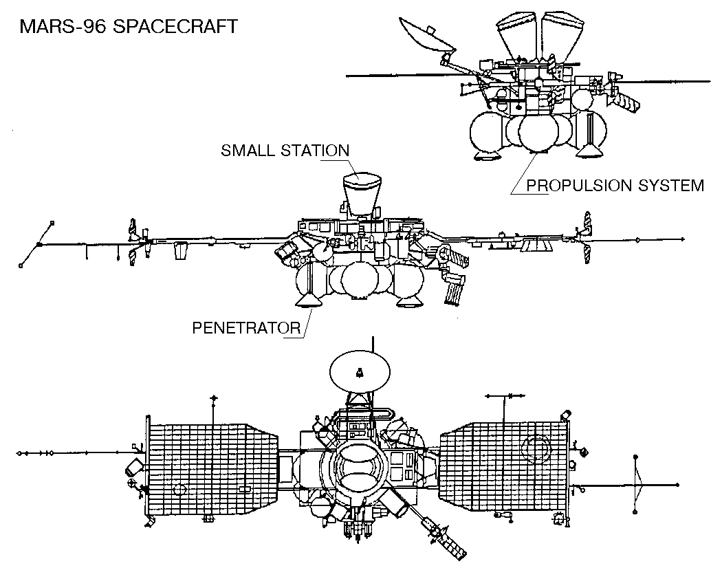 SPACECRAFT The MARS-96 spacecraft was built using the PHOBOS type spacecraft, modified using knowledge and experience gained from the PHOBOS mission. This is the heaviest of any previous interplanetary spacecraft. The main characteristics of the spacecraft are following: