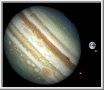This image shows the relative scale of Jupiter, Io, Earth, and