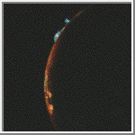 (745,700 miles). On the limb of Io are two blue volcanic eruption