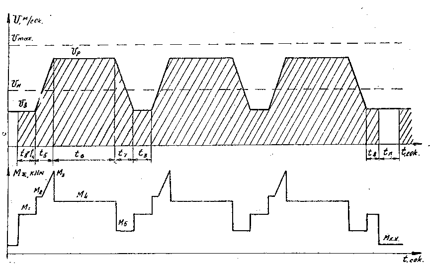 Из нагрузочной диаграммы выбирают максимальный момент двигателя М