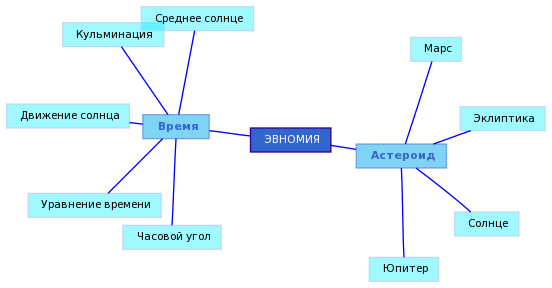 - астероид N 15. Открыт А.Гаспарисом в 1851 г. Диаметр - 260 км.Эвномия (Eunomia) - одна из трех богинь времен года (древние фермеры называли их порядок, мир, справедливость).