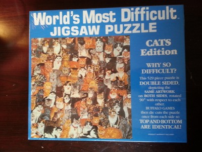 | На тему сложных пазлов. Существуют действительно сложные двусторонние пазлы типа такого: ![]() Прелесть их не только в рисунке (само по себе это не проблема), а еще и в том, что на обратной стороне напечатан тот же самый рисунок (м. б. повернутый на 90˚). Это усложняет сборку в разы, потому что каждый элемент и даже собранные сегменты приходится по многу раз переворачивать, и даже с небольшим количеством кусков (≈500) бывает невероятно весело. У меня дома была когда-то версия с разноцветными котиками и всеми вышеперечисленными свойствами: Обсуждение этого сообщения (2) | ||