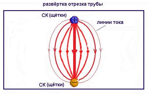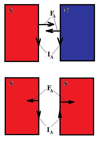 на валу(да, не на оси!) генератора. Подобный тормозящий ЭММ возникает и на валу дискового униполярного генератора ("Фарадея") в рабочем режиме (на нагрузку). Пример с двумя цилиндрами неудачен, там индукция радиальна. Мне-то все равно, я на вскидку, по направлениям изгибов тока и движения заряда определяю направление сил. А вот человеку, пользующемуся буравчиком, линиями (индукция),  и (левой-правой) рукой, сориентироваться сразу бывает трудновато. Поэтому попробую объяснить на примере стандартного диска Фарадея, где индукция, (как это правильно по-русски?) "ортогональна", что ли, плоскости диска.