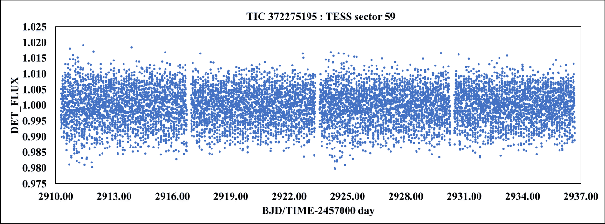The overall light curve of TIC 372275195, showing DET_FLUX (Detection Flux) in Sector 59 versus BJD/TIME (Barycentric Julian Date), is presented in Fig. 2.